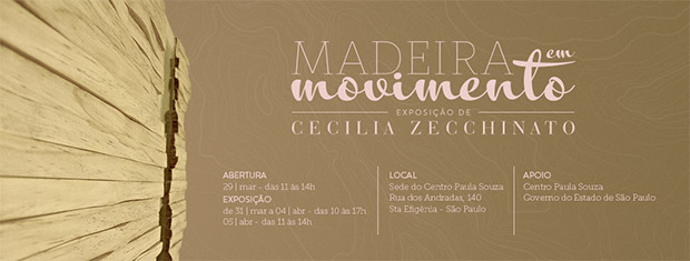 Uma exposição de esculturas feitas com madeira descartada está aberta ao público até o dia 5 de abril, das 10 às 17 horas, no mezanino da sede do Centro Paula Souza, na Rua dos Andradas, 140, Santa Ifigênia, São Paulo. As obras que compõem “Madeira em Movimento” são da artista plástica Cecília Zecchinato.