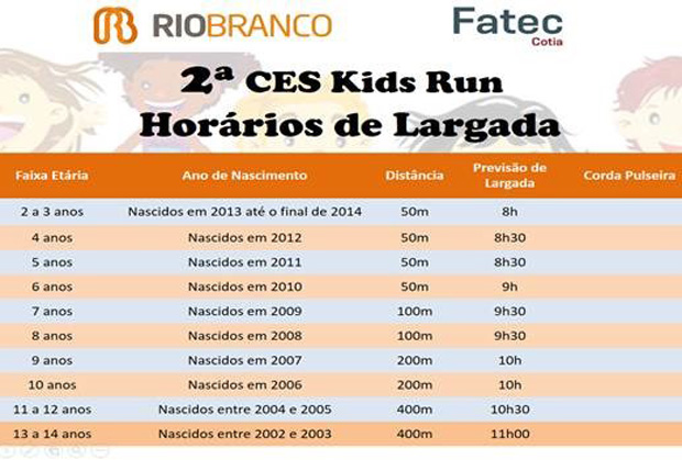 A Faculdade de Tecnologia do Estado (Fatec) Cotia realiza neste sábado, 10, a 2ª edição da CES Kids Run, corrida que vai reunir crianças de 2 a 14 anos, com e sem deficiência auditiva.