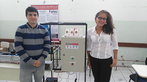 Karina Avelino da Silva e Thiago da Silva Braga, que concluíram o curso superior tecnológico de Automação Industrial em 2016, alertam que seu projeto não visa a geração de energia, mas o gerenciamento dessas duas fontes.