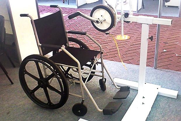 Ciclo ergômetro permite exercitar membros superiores de tetraplégicos. / Divulgação.