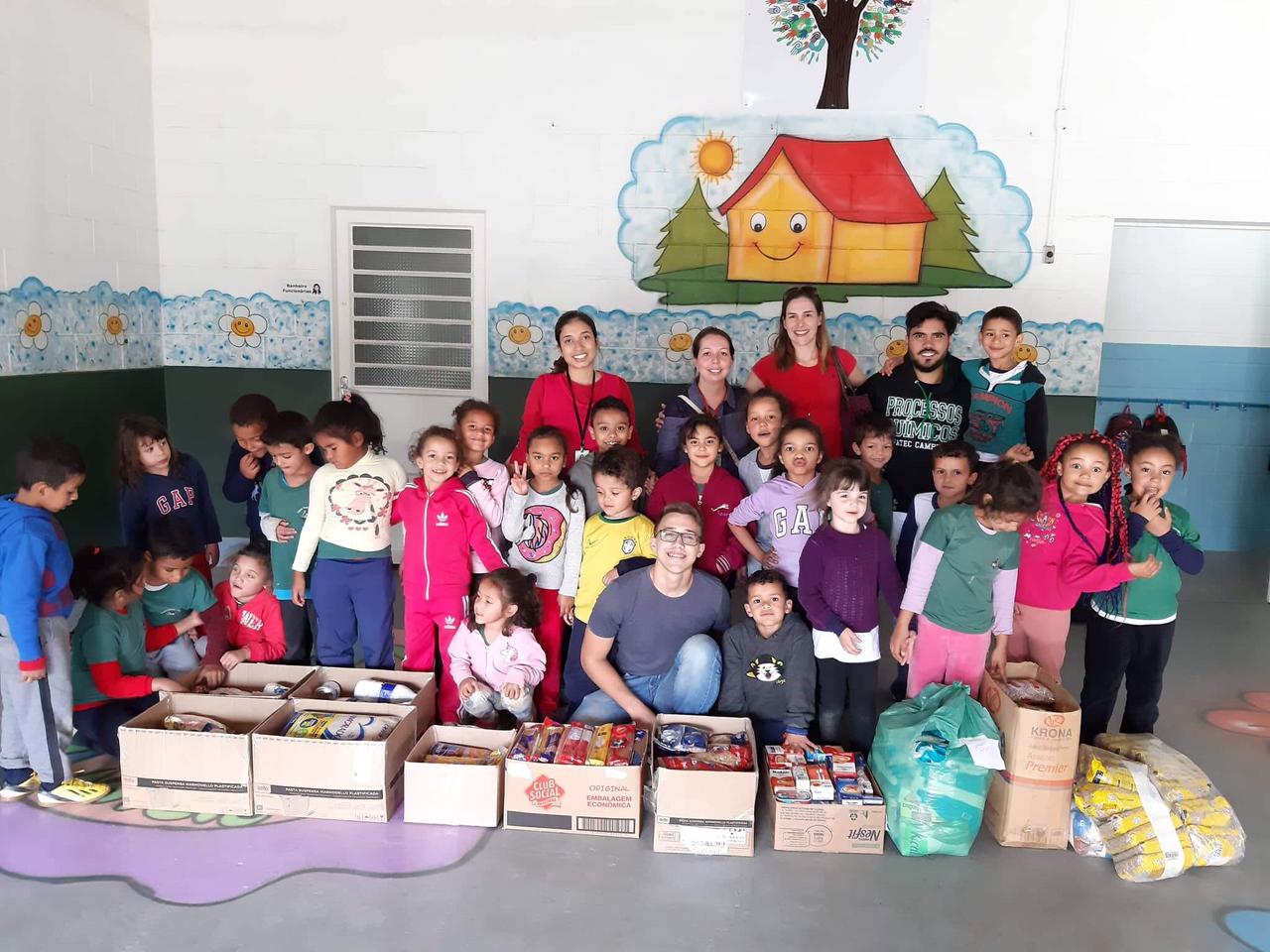 Estudantes da Fatec Campinas entregam donativos presencialmente em creche da cidade no segundo semestre de 2019 l Foto: Divulgação