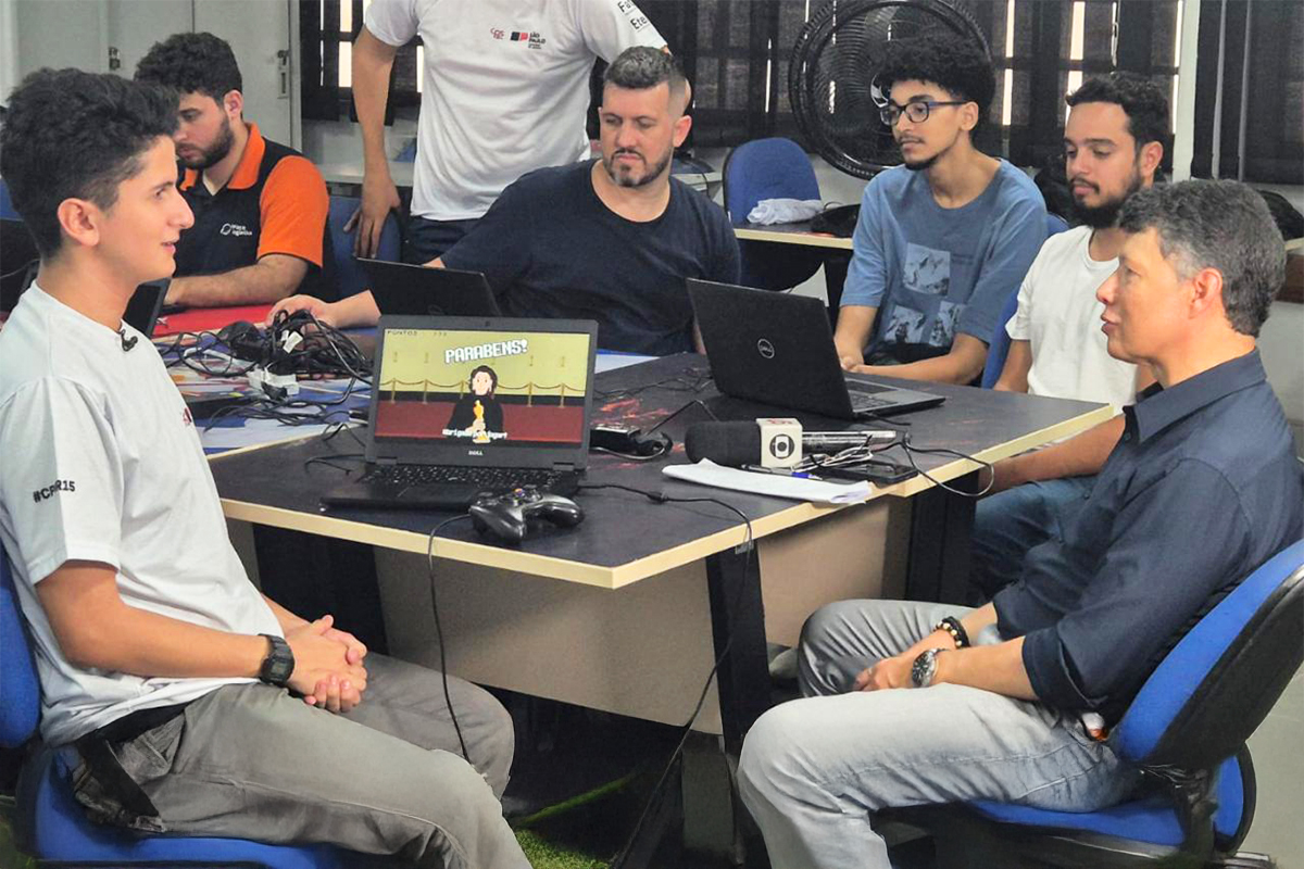 Estudantes da Fatec Carapicuíba durante gravação de entrevista sobre a GGJ para o Jornal Nacional, da Rede Globo l Foto: Divulgação