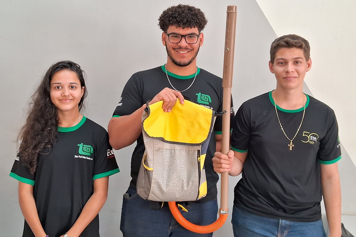 Alunos da Etec Prof. Urias Ferreira, de Jaú, criaram mochila de adubação para plantio em áreas agrícolas pequenas l Foto: Divulgação