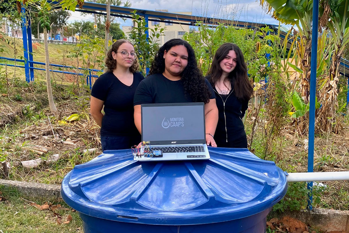 Alunas da Etec de Atibaia desenvolveram tecnologia para monitorar níveis de água para irrigação da horta escolar l Foto: Divulgação
