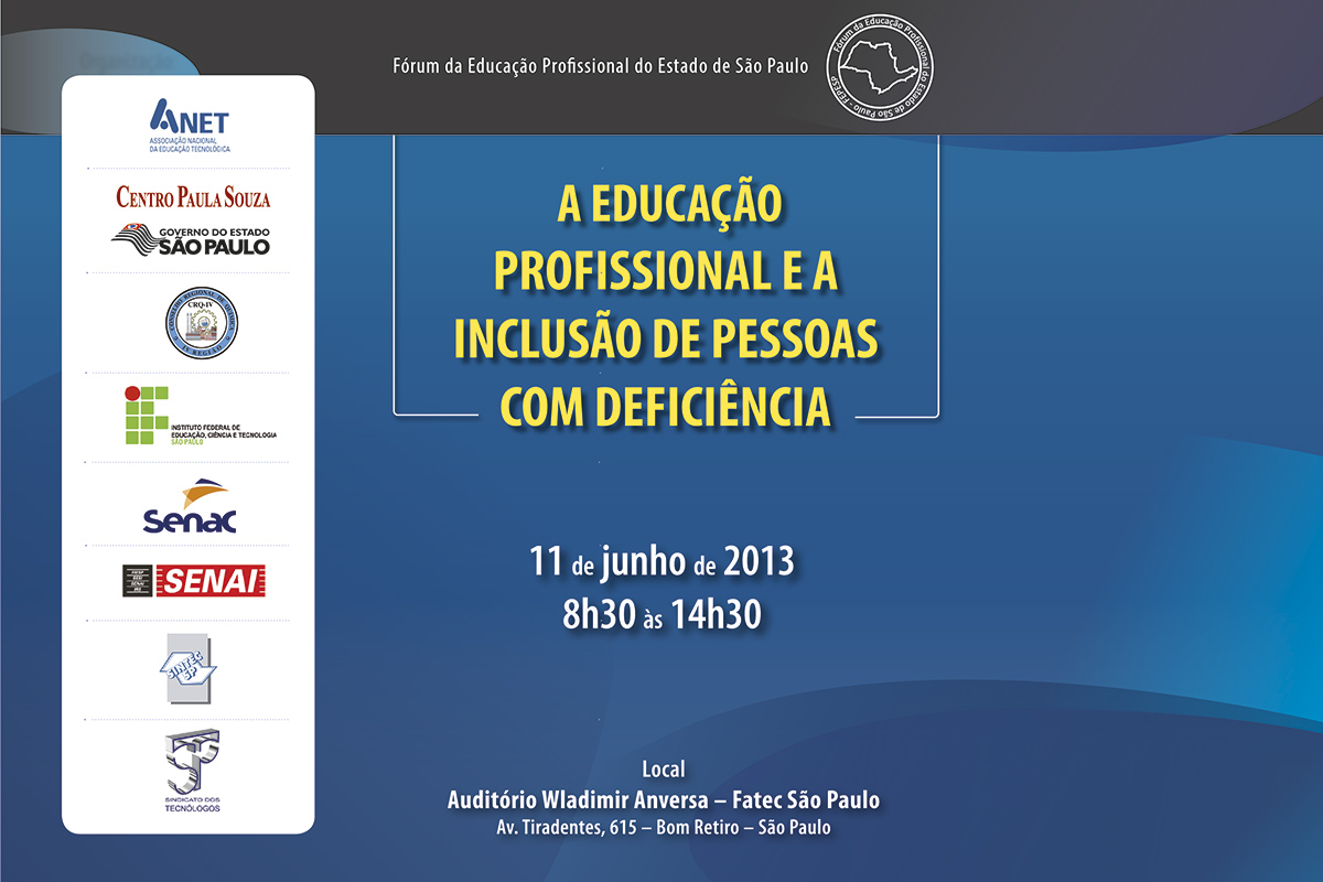 O Fórum terá como tema a inclusão de pessoas com deficiência física e mental na escola e no trabalho, e o papel da educação profissional como ponte, proporcionando condições para que esse estudante assuma efetivamente seu papel de cidadão, resgatando sua autoestima e suas perspectivas profissionais e pessoais.