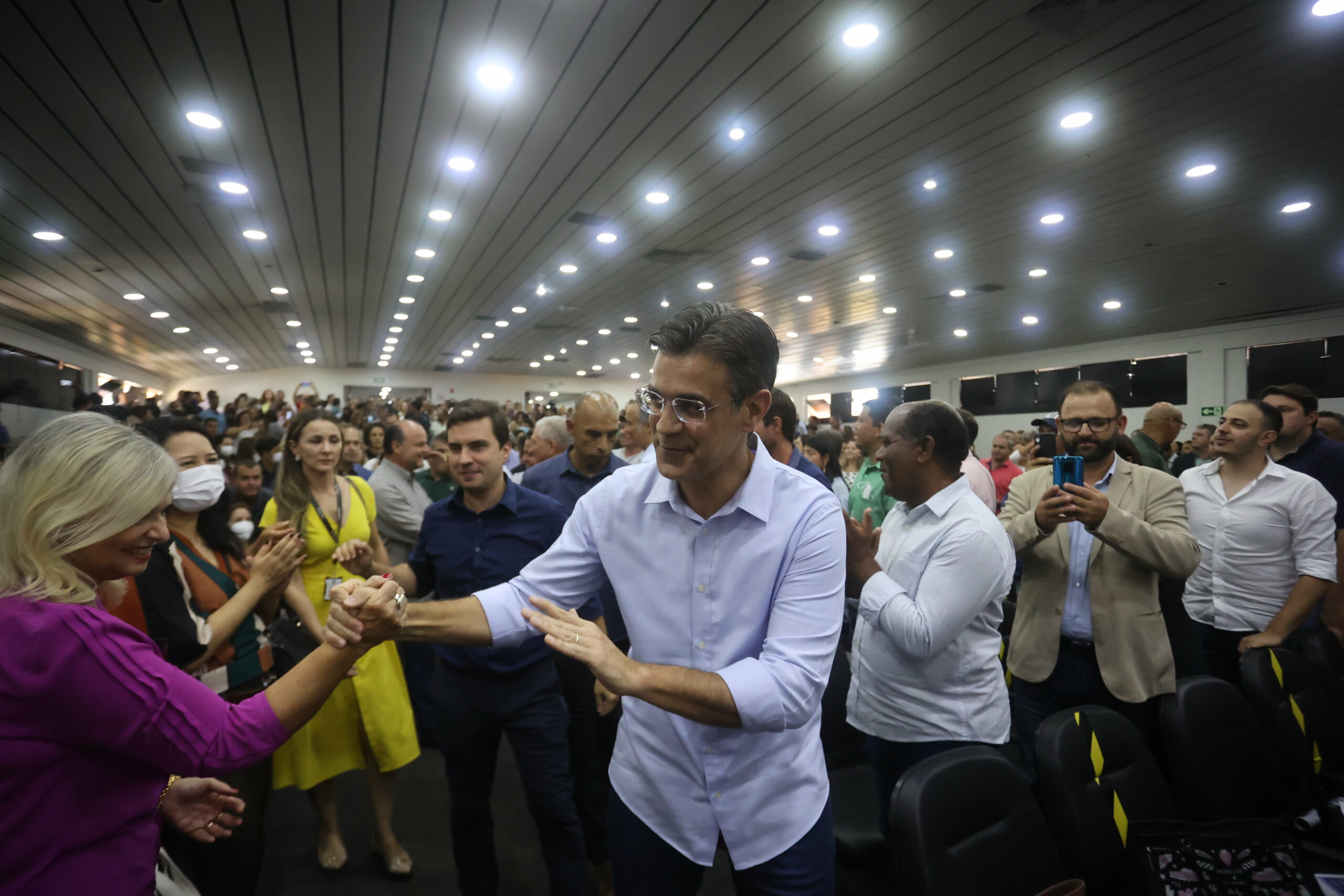 Governador Rodrigo Garcia cumprimenta diretora-superintendente do CPS, Laura Laganá l Foto: Divulgação