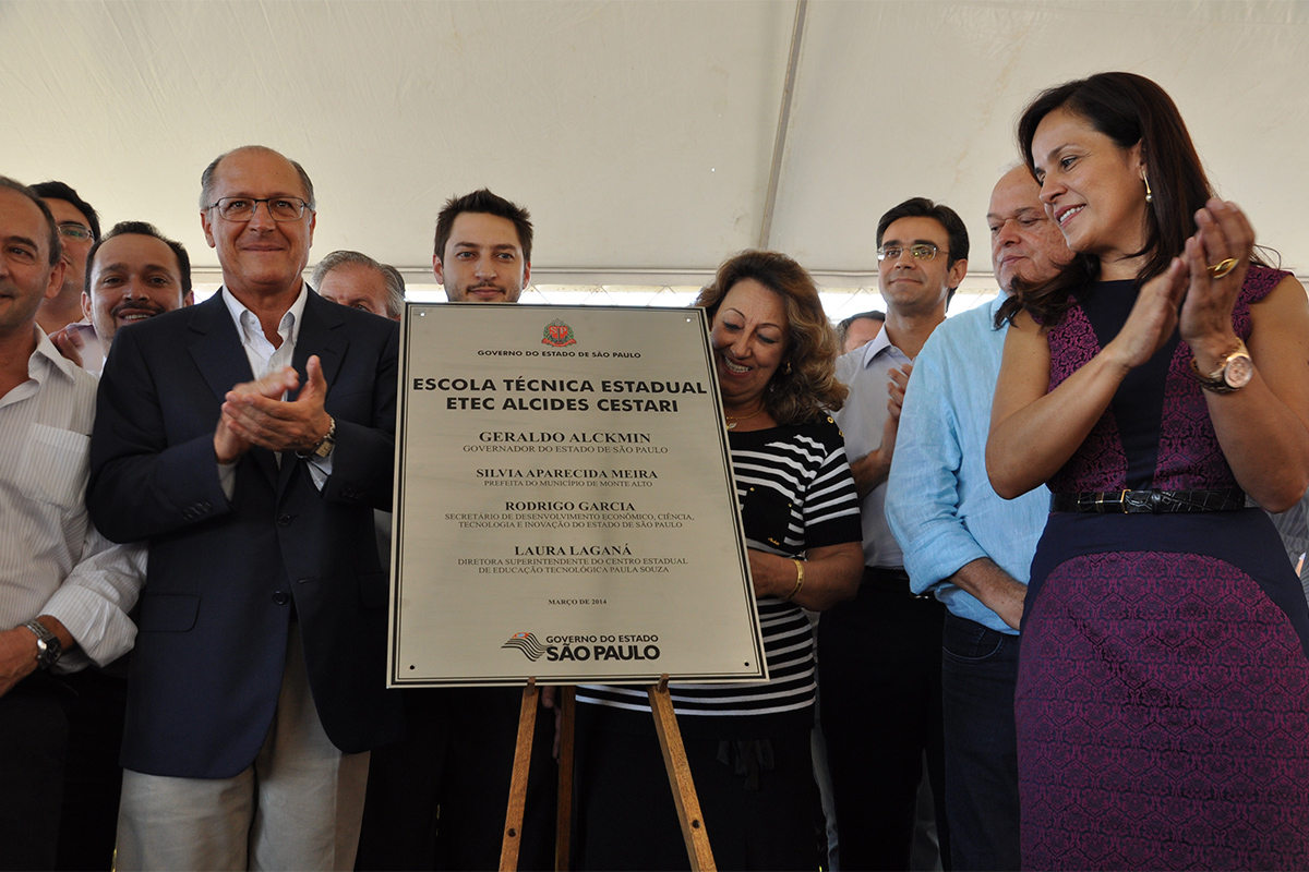 Na tarde desta quarta-feira, 26 de março, o governador Geraldo Alckmin fez o descerramento da placa da Escola Técnica Estatual (Etec) Alcides Cestari, de Monte Alto. O secretário de Desenvolvimento Econômico, Ciência, Tecnologia e Inovação, Rodrigo Garcia, participou do evento.