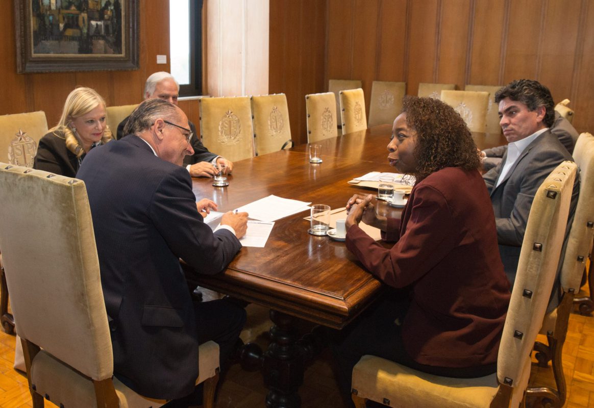 O governador Geraldo Alckmin recebeu ontem, 25 de outubro, no Palácio dos Bandeirantes, na Capital, o secretário-adjunto de Desenvolvimento Econômico, Ciência, Tecnologia e Inovação (SDCTI), Cláudio Valverde, a diretora-superintendente do Centro Paula Souza (CPS), Laura Laganá, o diretor da Escola Técnica Estadual (Etec) Prof. Carmelino Corrêa Junior, de Franca, Cláudio Sandoval, e Joana Félix, professora da unidade agrícola. O objetivo do encontro era conhecer um pouco do trabalho de estímulo à pesquisa desenvolvido por Joana com os estudantes da escola.