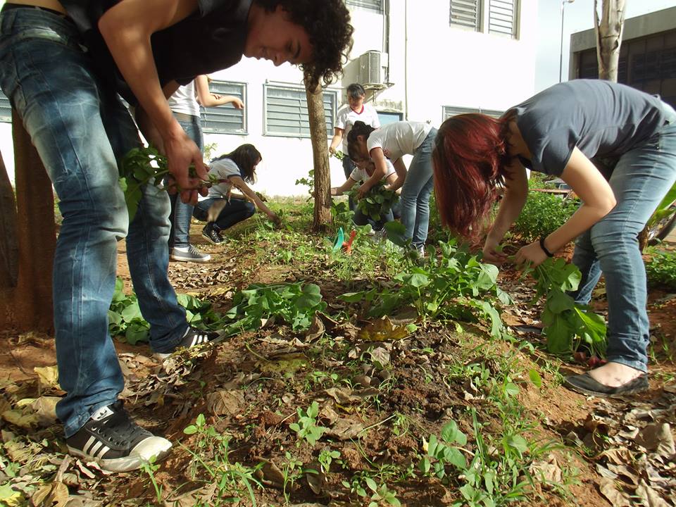 Outro aspecto interessante da horta é o resgate de plantas alimentícias não convencionais, que foram se perdendo com o tempo. Entre elas, estão o caruru, a beldroega e a taioba. E os alunos também plantam inhame e batata-doce, por exemplo, que são raízes típicas do Brasil.