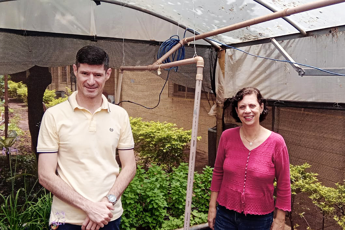 Os professores Mário Pardo e Teresa Gorayeb na horta urbana automatizada da Fatec Rio Preto l Foto: Divulgação