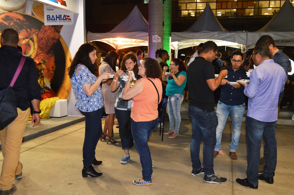 Crédito: Divulgação | Visitantes do evento provam pratos do novo cardápio da merenda