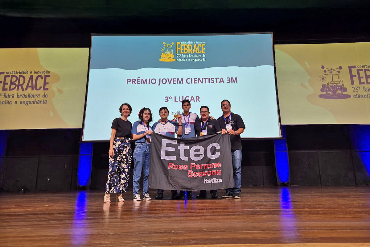 Grupo da Etec Rosa Perrone Scavone conquistou terceiro lugar no Prêmio Jovem Cientista | Foto: Divulgação