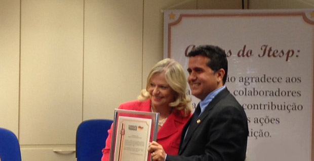A diretora superintendente do Centro Paula Souza, Laura Laganá, recebeu nesta terça, 2, na Capital, o certificado Amigo do Itesp, concedido pela Fundação Instituto de Terras (Itesp) do Estado de São Paulo a pessoas e instituições que contribuem para o avanço das políticas agrária e fundiária do Estado.