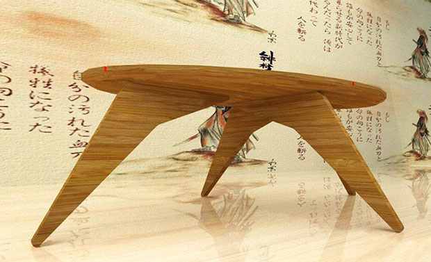 Desenvolvida pela aluna Leticia R. Gonçalvez, mesa selecionada para a exposição elementos inspirados no mobiliário nacional da década de 50-60