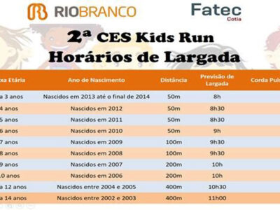 A Faculdade de Tecnologia do Estado (Fatec) Cotia realiza neste sábado, 10, a 2ª edição da CES Kids Run, corrida que vai reunir crianças de 2 a 14 anos, com e sem deficiência auditiva. O […]