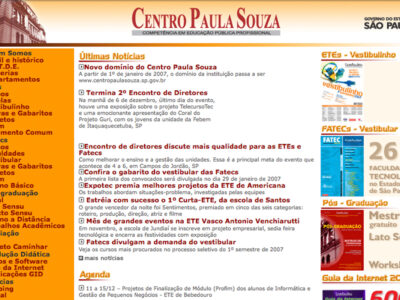 A partir do dia 1º de janeiro de 2007, o domínio da instituição muda de .com.br para .sp.gov.br. Assim, o novo endereço do site será www.centropaulasouza.sp.gov.br Os e-mails também mudam, após o @, para centropaulasouza.sp.gov.br Exemplo: josesilva@centropaulasouza.sp.gov.br