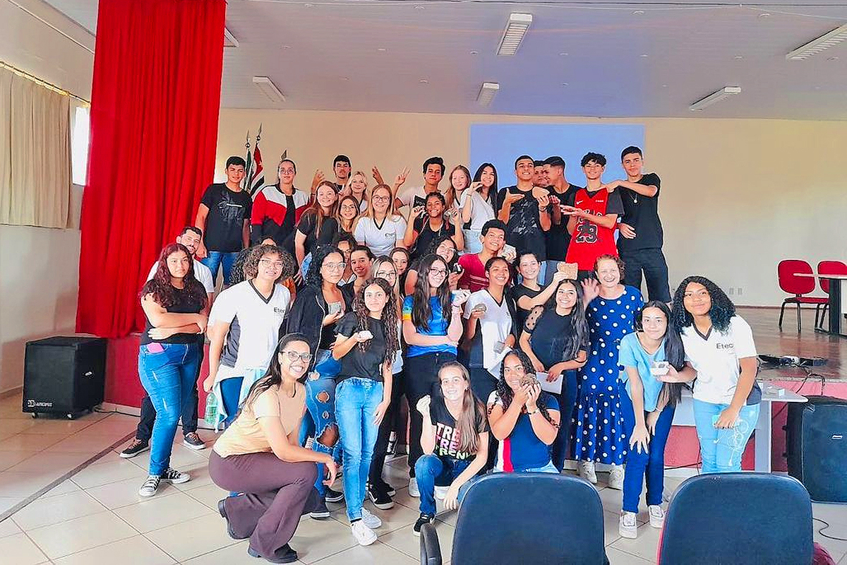 Já na Etec Prof. Pedro Leme Brisolla Sobrinho, de Ipaussu, na Região de Marília, o trabalho envolveu estudantes de dois cursos: Administração e Desenvolvimento de Sistemas integrados ao Ensino Médio. “A ideia nasceu da curiosidade dos alunos de Administração sobre um acervo com mais de 30 exemplares de rochas que temos na Etec”, conta a professora de química da turma e orientadora do projeto, Graciele de Souza Pinto.
