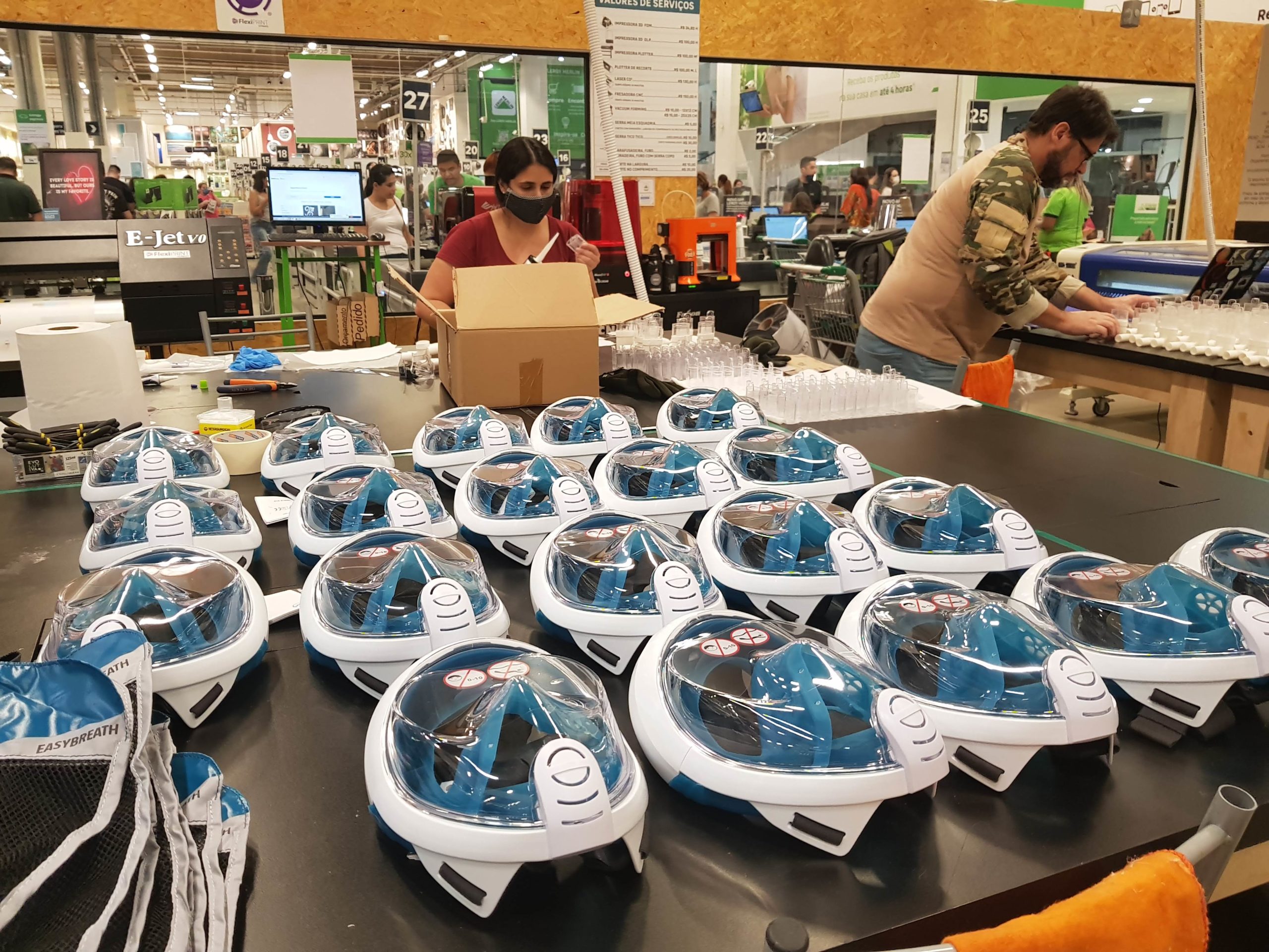 Voluntários produzem máscaras de Ventilação Não Invasiva (VNI) para ajudar no tratamento da Covid-19 | Foto: Divulgação