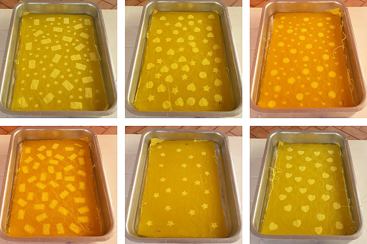 Após receber uma aplicação de plasma, que é um gás ionizado, o tecido é tingido com urucum ou açafrão e tratado com flúor carbono e plasma novamente. “Usamos o plasma para preparar o tingimento, substituindo os processos convencionais, que usam agentes químicos, grande quantidade de água e energia e consomem tempo”, afirma o pesquisador. “Usamos também para obter o efeito estético do tecido.”