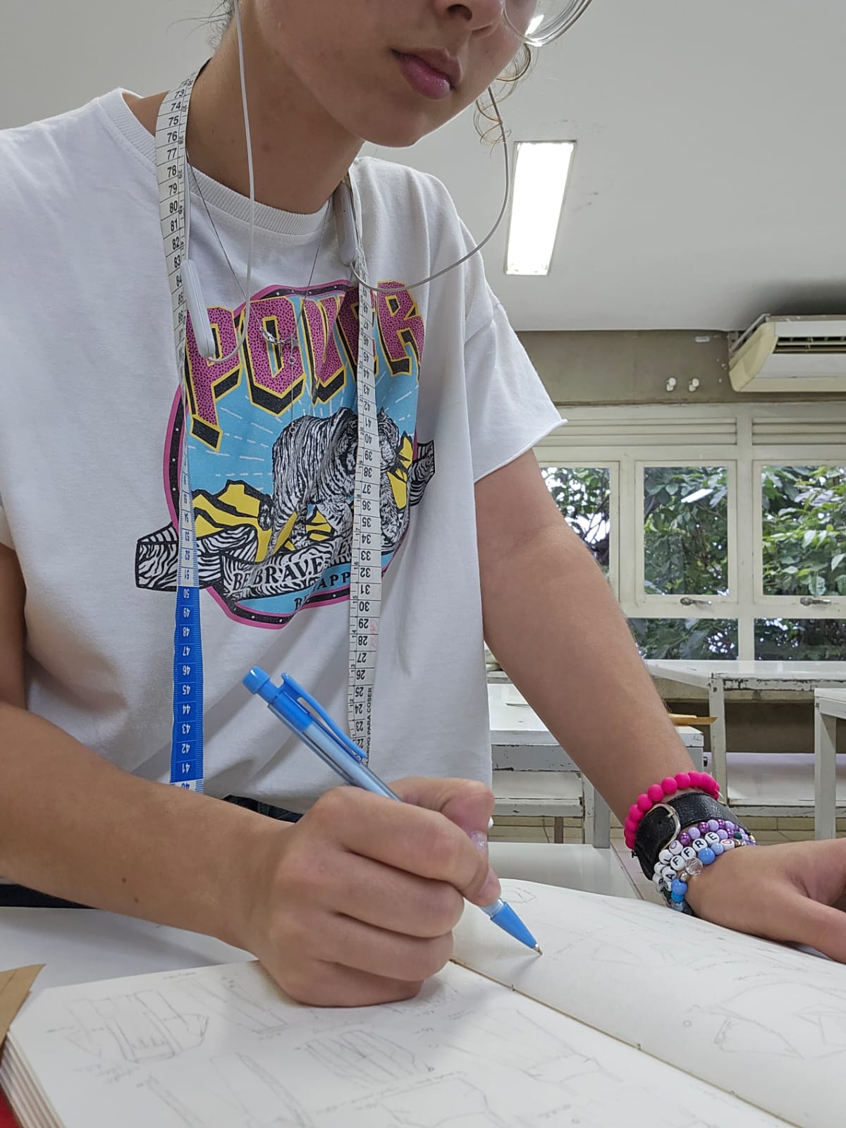 Formada na Etec Tiquatira em 2018, Caroline acredita que sua vivência como aluna e, posteriormente, como professora, foi essencial para a construção da proposta: “O contato constante com projetos e a experiência prática durante o curso me prepararam para pensar em soluções reais e aplicáveis dentro da moda.”