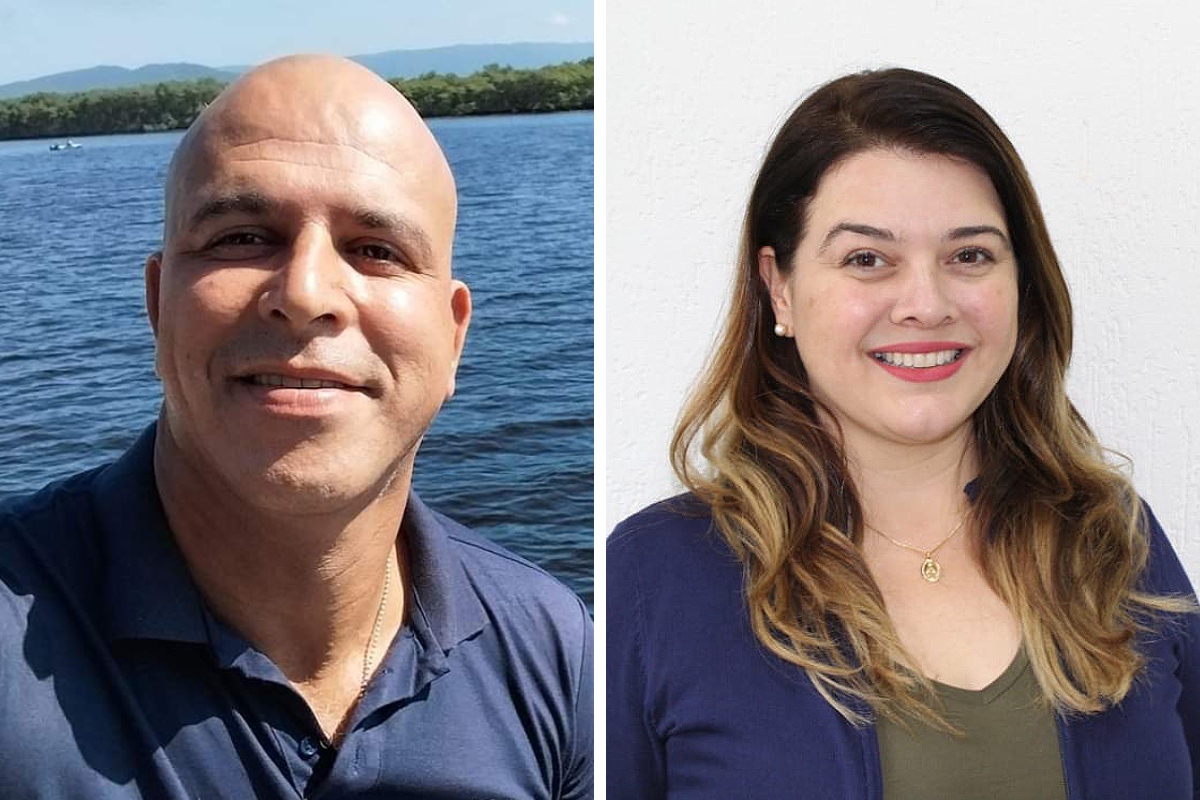 Ivan dos Santos, da Etec de Mongaguá, e Katherine Silva, da Fatec São Roque, orientam sobre como planejar a viagem | Foto: Divulgação
