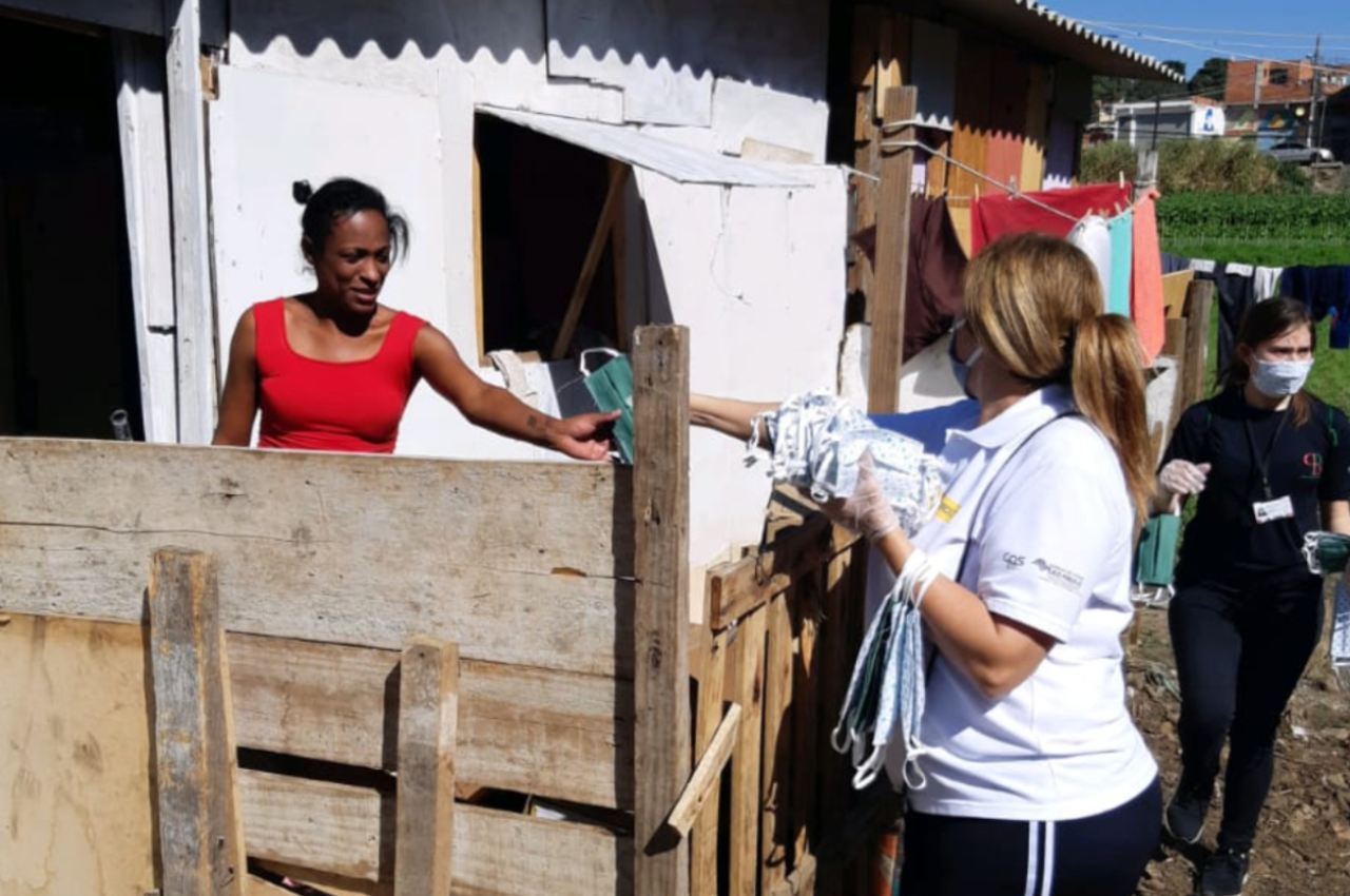 Equipe do Centro Paula Souza durante distribuição de máscaras sociais em comunidade do Parque Novo Mundo | Foto: Arquivo Pessoal