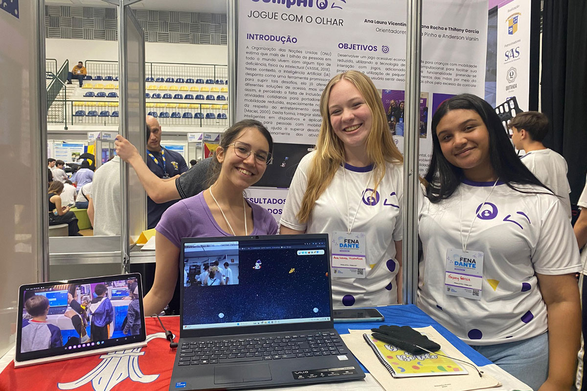 A unidade de Ribeirão Pires também classificou dois projetos, ambos finalistas da 15ª Feira Tecnológica do Centro Paula Souza (Feteps), realizada em agosto, na Capital. Entre os trabalhos está o Jumpai, que conquistou segundo lugar na competição. O game emprega técnicas de inteligência artificial com bibliotecas de código aberto para interpretar o direcionamento do olhar e piscadas que controlam as ações do personagem.