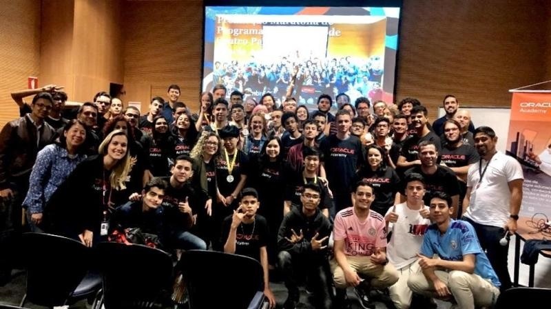 Estudantes de Etecs durante a cerimônia de premiação de 2019, realizada na Oracle, em São Paulo l Foto: Divulgação