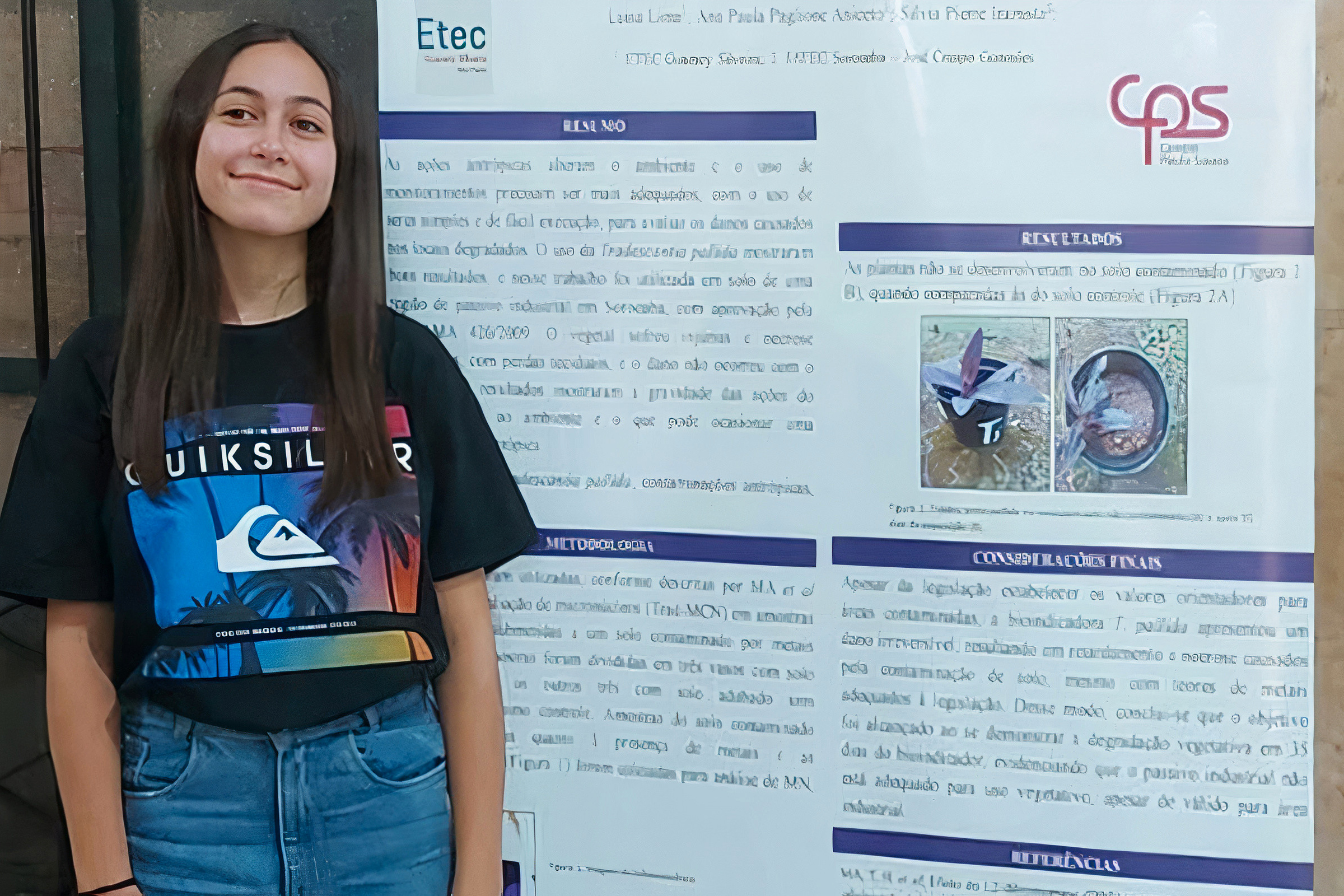 Sob supervisão e orientação das professoras da Unidade de Pós-Graduação, Extensão e Pesquisa (Upep) do CPS, Ana Paula Paglione Aniceto e Silvia Pierre Irazusta, a aluna da Escola Técnica Estadual (Etec) Guaracy Silveira, Luisa Lima, ganhou menção honrosa na área de Meio Ambiente. O projeto Bioindicação de Solos por Metais Pesados – Tradescantia pallida foi desenvolvido através de bolsa conquistada pelo Programa Institucional de Bolsas de Iniciação Científica (PIBIC Jr) do Conselho Nacional de Desenvolvimento Científico e Tecnológico (CNPq), oferecida para estudantes dos ensinos Médio e Técnico do CPS.