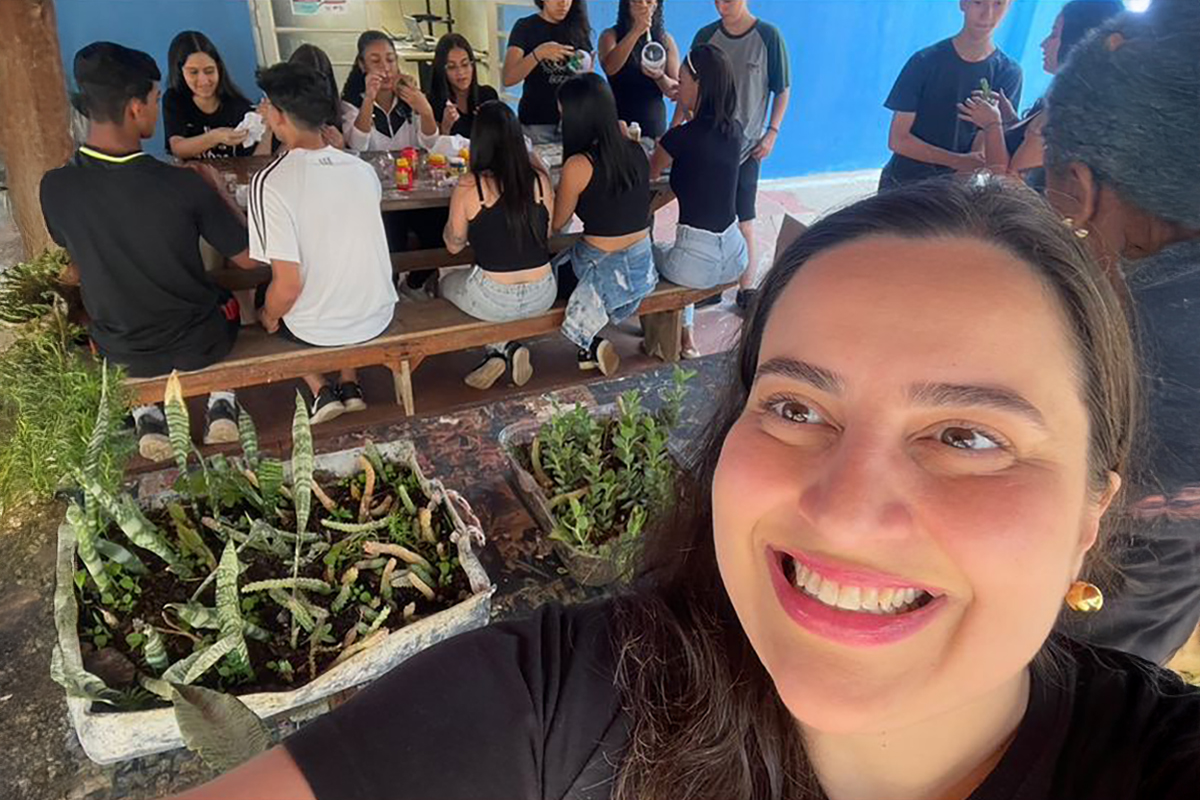 Vânia Bordini Marchi, coordenadora pedagógica da Etec Martinho di Ciero, de Itu, durante atividade com os alunos l Foto: Divulgação