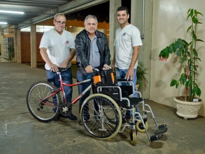 Para atender pessoas com mobilidade reduzida, jovens do curso de Mecânica desenvolveram equipamento para ser instalado no lugar do guidão e da roda, permitindo o encaixe da cadeira
