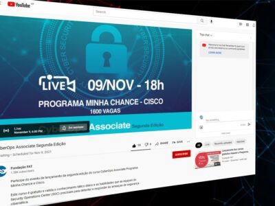 Por meio do programa Minha Chance, são oferecidas 1,6 mil vagas no curso gratuito de qualificação online CyberOps Associate, do Cisco Networking Academy; inscrições até 16 novembro