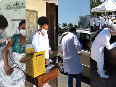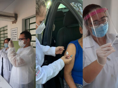 Supervisionados por professores, jovens imunizam idosos, profissionais da saúde, policiais e funcionários do INSS; vacinação ocorre em hospitais, casas de repouso, domicílios e no sistema drive-thru