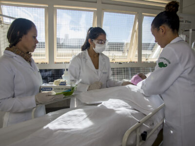 Treinamento é uma das atividades práticas do curso técnico de Enfermagem; processo seletivo está com inscrições abertas para esse e outros cursos até o dia 8 de maio