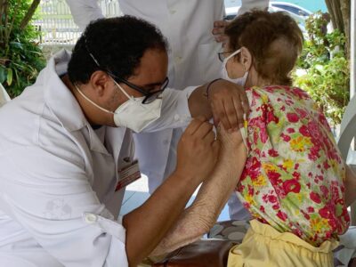 Com o objetivo de reduzir a incidência de doenças respiratórios e a sobrecarga no sistema de saúde, a prefeitura realiza vacinação com o apoio de estudantes do curso técnico de Enfermagem