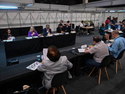 Conselheiros conheceram os mais de 130 projetos inovadores desenvolvidos por estudantes que estão expostos na 15ª edição da Feteps; evento ocorre até a próxima quinta (22)