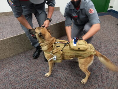 Equipamento que permite o monitoramento remoto das condições físicas dos animais durante as missões de salvamento foi doado para o Corpo de Bombeiros, da Capital