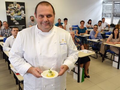 Bobo Cerea é responsável pelos pratos do restaurante Da Vittorio, um dos mais tradicionais da Itália; cerca de um terço dos participantes da oficina são merendeiras e professores do Estado
