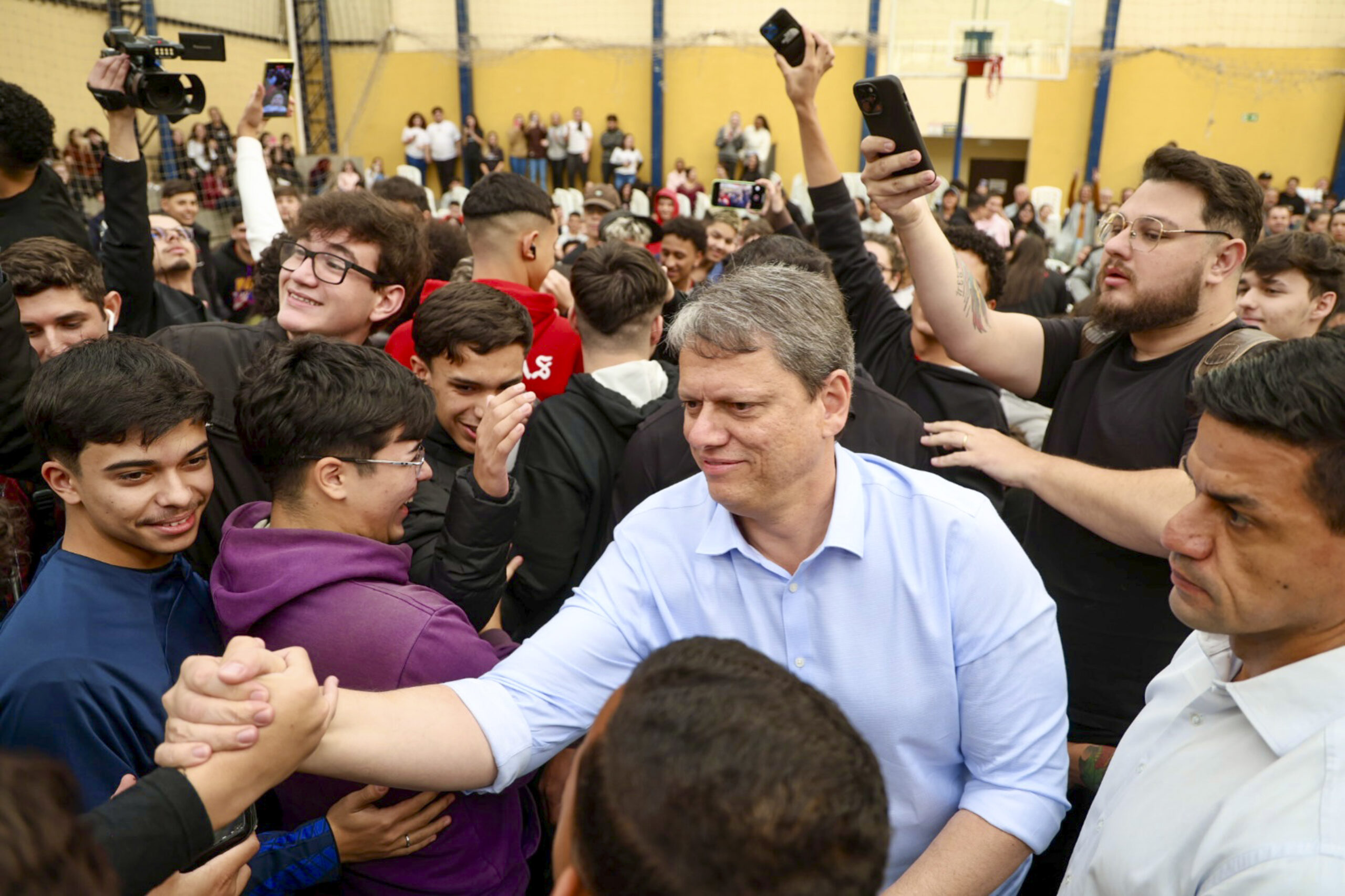 Durante o evento, três alunos representaram os demais colegas e fizeram perguntas a Tarcísio de Freitas, sobre temas como a trajetória estudantil do governador, a estratégia para oferta de empregos no Estado e a importância dos cursos técnicos para o desenvolvimento do País.