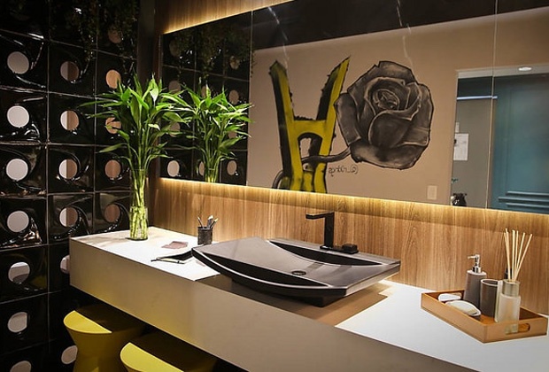 “Para a elaboração do projeto, trabalhei com o conceito urbano, com o qual me identifico bastante, utilizando cores escuras e tendo o amarelo como destaque”, explica Lucas. “Está sendo maravilhoso. É muito gratificante ver, pela primeira vez, meu espaço executado em uma mostra tão importante para a área. Mais gratificante ainda é ouvir elogios e ver que todo o esforço valeu a pena.”