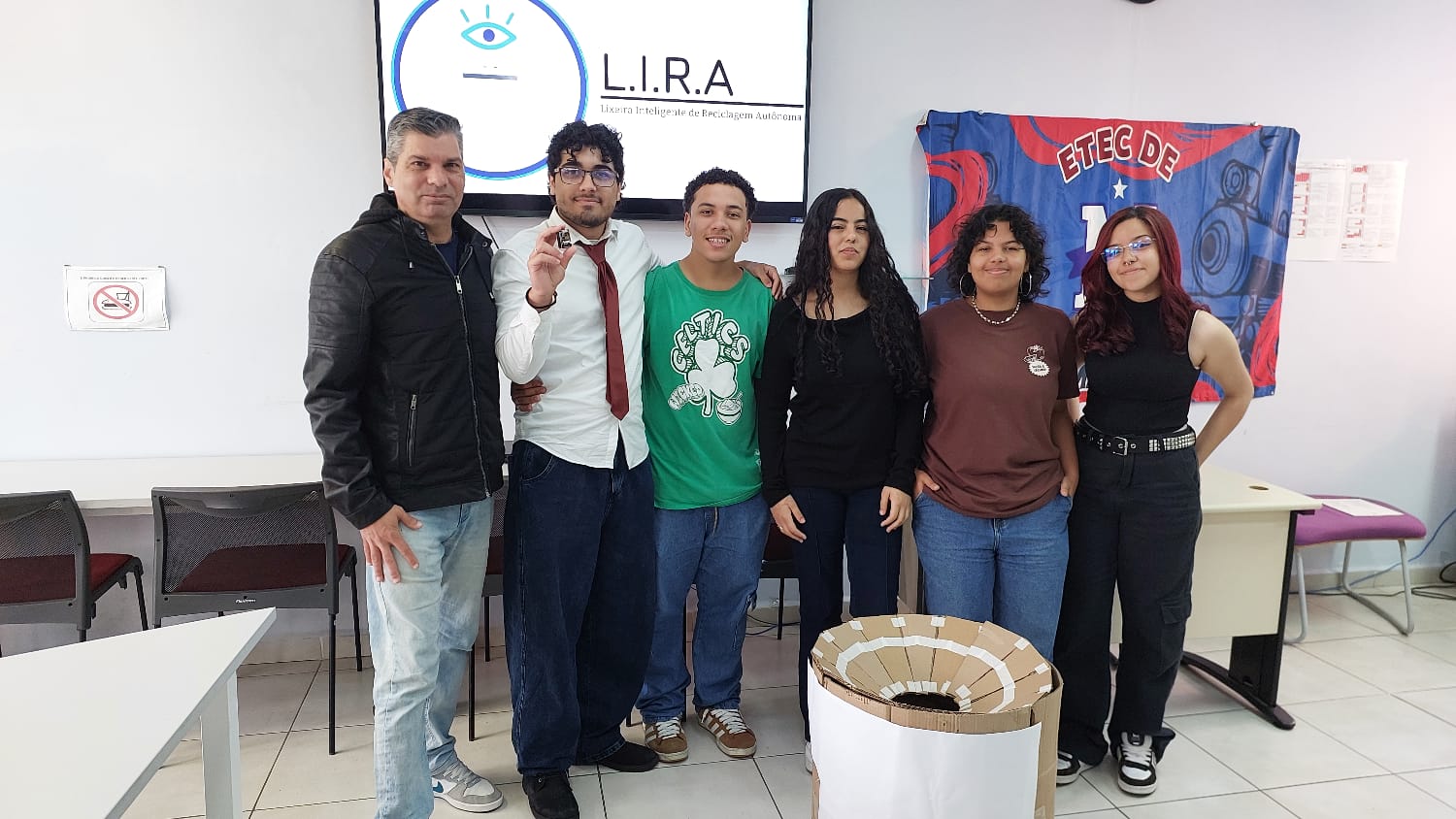 Melhorar a destinação de resíduos para a reciclagem, evitando o descarte irregular, é a base da Lixeira Inteligente de Reciclagem Autônoma (L.I.R.A.), trabalho idealizado pelos estudantes, Guilherme Henrique de Oliveira Novais, Kimberlyn Carolyny Santos Silva, Olívia de Araújo Candido, Pedro Miguel Silva Oliveira e Thaisa Silva Borborema, todos matriculados no 2º ano do Ensino Médio integrado ao Técnico em Desenvolvimento de Sistemas da Etec de Mauá.