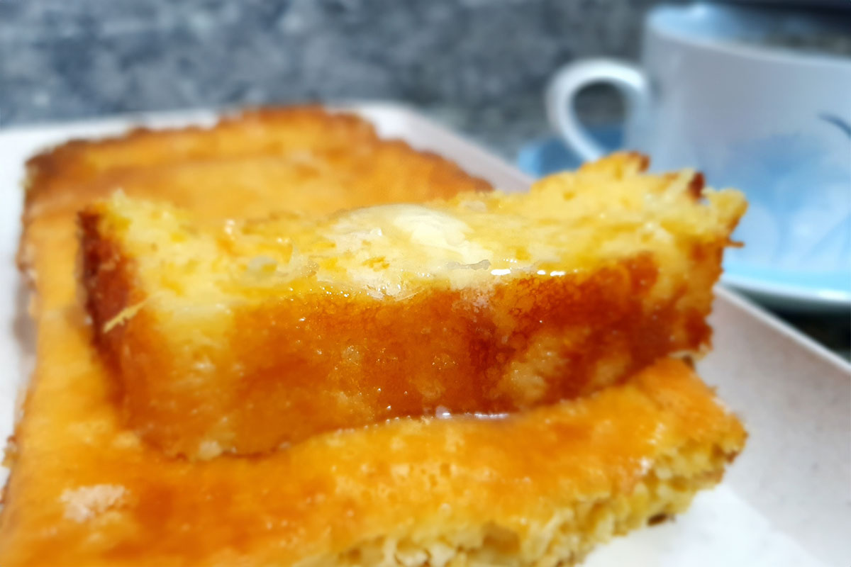 Na hora de servir, pode-se colocar manteiga sobre o bolo.