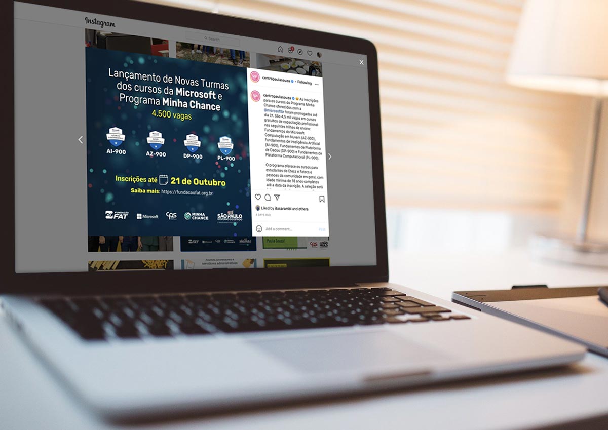Termina nesta quinta-feira (21) o prazo de inscrição para os cursos gratuitos de capacitação do Centro Paula Souza (CPS) oferecidos em parceria com a Microsoft. São 4,5 mil vagas nas seguintes trilhas de ensino: Fundamentos do Microsoft Computação em Nuvem (AZ-900), Fundamentos de Inteligência Artificial (AI-900), Fundamentos de Plataforma de Dados (DP-900) e Fundamentos de Plataforma Computacional (PL-900). As inscrições devem ser feitas pelo site fundacaofat.org.br.