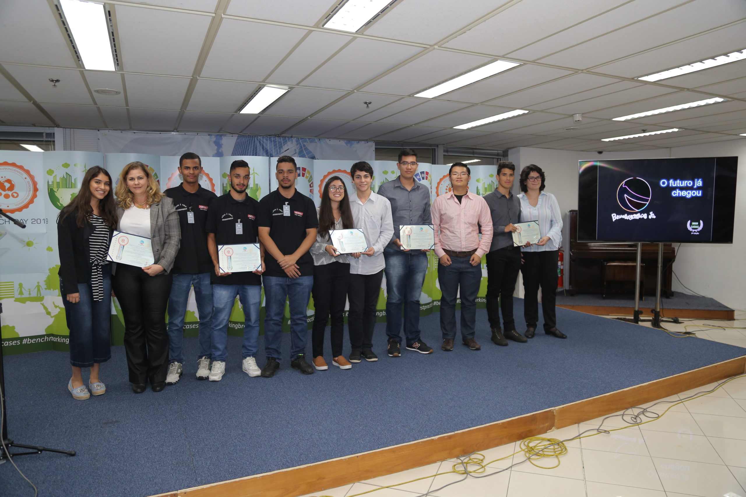 Alunos das Etecs e Fatec que foram premiados na décima sétima edição do programa Benchmarking Brasil | Foto: Divulgação