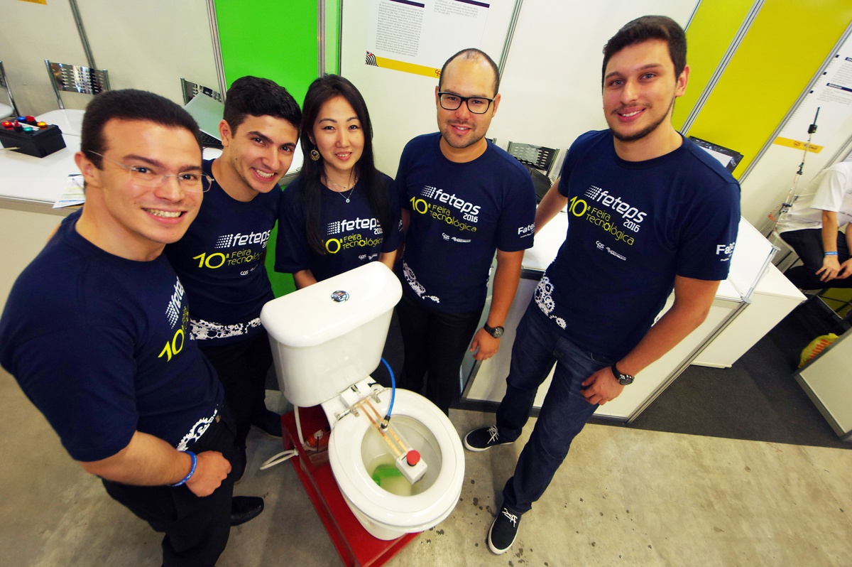 Crédito: Gastão Guedes | Equipe da Fatec Osasco durante apresentação do sistema para descarga inteligente na 10ª Feteps