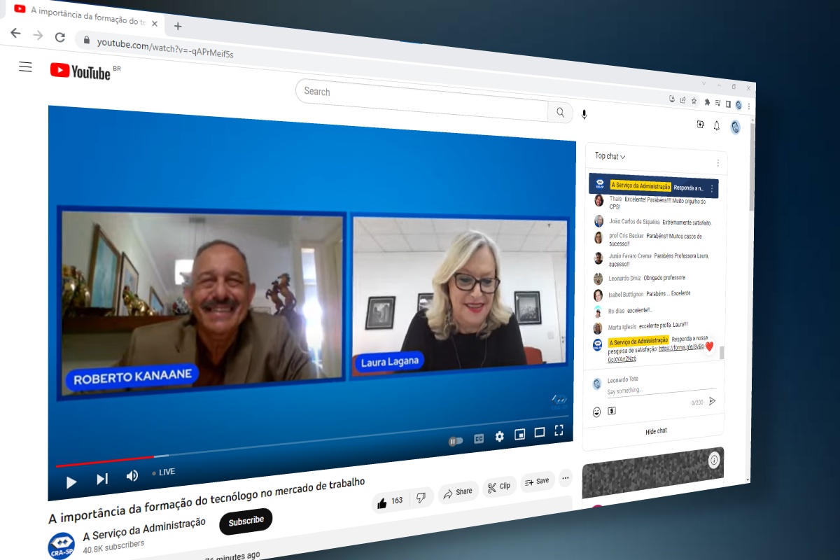 Encontro online organizado pelo CRA-SP contou com a participação da diretora-superintendente do CPS, Laura Laganá; gravação está disponível no YouTube