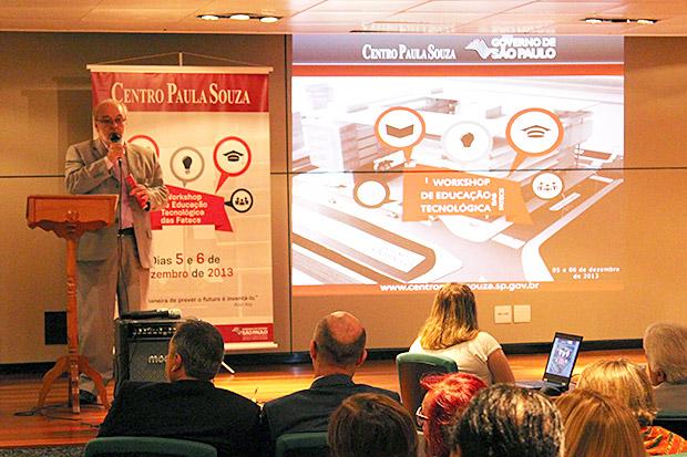 César Silva, vice-diretor superintendente do Paula Souza, na abertura d I Workshop de Educação Tecnológica. / Divulgação.